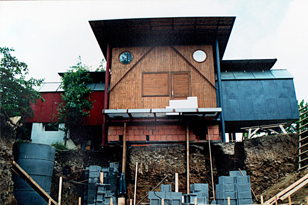 Extension of weekend house into family house with swimming pool.