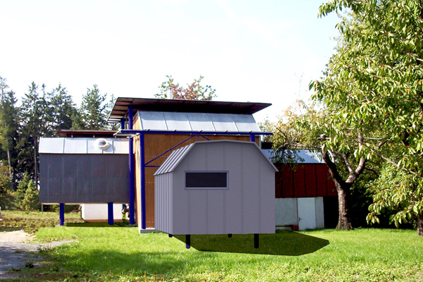 Rozšíření chaty z maringotky na rodinný dům s bazénem. /