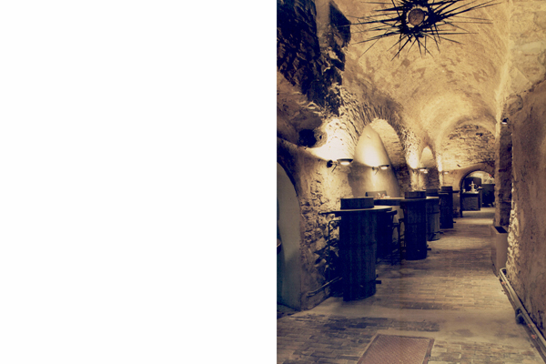 Interier vinárny ve sklepních prostorech. /